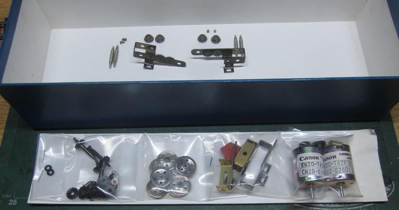 最新へジャンプ R7/12/31まで 今日は令和7年の大晦日、明日からは令和8年です。我が家の大晦日は、早めのおせち料理で一杯遣りながら紅白歌合戦を観て、除夜の鐘を聴きながら『ゆく年くる年』で年越しするのが決まり。 令和7年最後の散財は、あたしには意外な電機になりました。 大雪6号編成を作るにあたっていろいろ調べていたら、ED76の500番台という電機がいたことを知りまして。ふ~ん、北海道にしかいなかった形式で、EDのくせにSGを積んでいるからF級18.4mの車体長があるんだって、へ~。 1/80模型では完成品は天賞堂の高級ブラスモデルだけ?・・・こりゃ手が出ん。と諦めていたところに奄美屋のキットを発見。 正直に申し上げますと、常々、電機の工作においてメーカー完成品に伍する工作が出来ると思えないのでありまして、手を出すのもどうかと思っていたのです。 ディテールも良く判らないし、と思っていたところに『北の赤い電機たち』という資料本があることを知りました。これがあればなんとかなるかも?早速ググってみたらこちらも市場在庫なし。 こりゃどもならんかと諦めかけていたところ、ひょっとして我が家の蔵書にあったような・・・と調べてみたらありました(喜)、よくやった、自分。 こりゃ突っ走るしかないと、アマミヤED76-500のネット在庫を調べたら「ある」とのこと。 最後の1箱?というのも良かったし、作らなきゃ手に入らないっていうのがまた良い。散々迷いましたが、えいやっと大枚を叩くことにしました。 ・・・まあ勢いが大事なのよ。 さっそくオープン!この瞬間が良いんですよね~。 う~ん、寸法なしか・・・ パーツは? ふ~ん、電機のキットってこういう感じなんだ、モーターも2つ入っている。 屋根と床板。 前面。 おお、前面で繋ぐのか、貫通扉があるからいいんだな。 取敢えず工作方針を立てなきゃだけど、肝心の13mm化はどうやるんだ? インサイドギヤで駆動も悪くないんだけど、車軸はM2ネジ付きか? こりゃ自分じゃ挽けないしな~。 MPギヤ化という手もあるらしいけど、MPギヤって? ああ、パンタと中間台車の車輪、カプラーも別売なのね。DCCも積みたい・・・なかなか楽しそうです。 R8/01/04まで 明日は令和8年の仕事始めです。社会復帰できるでしょうか。 毎年年明けは年始挨拶で実家巡りですが、道すがらIMONに寄ってパーツを仕入れてきました。 tomixのPS102とマッハカラー4です。 PS102の選択肢にはフクシマ製、じゃなかったIMON製のがあったけど1個4000円税抜きの高級品。年末に高額の買い物をしてしまったのでここは量産品で我慢です。 カラーは金属用のマッハを買ったのだけど、間違えて赤13号を買ってしまった。たぶん消耗品は交換してもらえないから、赤2号を買い直さなきゃ。赤13号は使う予定無し、やれやれ。 R8/02/22まで 昨日2/21はクラブの例会だったのでいつもの電車で向かったら、乗っている電車で人身事故に遭遇してしまいました。前面展望で被りついていた鉄っちゃんと思しき中年は一部始終を見てしまったようで、関係者全員気の毒です。 運転士は直ぐに指令に連絡を取り、状況を説明し、後部に向かっていきました。無線がスピーカーから聞こえてくるので、状況は良くわかります。車内の乗客は大人しく埒が明くのを辛抱強く待っていました。結局電車が動き出すまで85分掛かりました。 ミラノ・コルティナ冬季五輪も明日で終わり、日本はスノーボードとフィギュアスケートでメダルを量産し、過去実績を更新しました。観ていて楽しい期間でした。 R8/02/27まで あっという間に1週間経ってしまって2月ももう終わり、令和8年は本当に月日が早く流れているように思います。 大雪6号編成はスユニのボルスターが修正できたので一先ず完成しました。常紋の牽引機はD517と49600が居るので、いよいよED76-500の製作に着手しようと思います。 まずは一番気になる動力関係です。動力関係が13mm化できればあとは箱組み、もう完成したようなもの。 このキットは台車の駆動はインサイドギヤです。もちろん16番仕様なので13mm用のインサイドギヤと車軸を入手してあります。 小さな部品を無くさないように箱の中で作業をします。とは言ってもまだ並べているだけ。 いよいよキットの小袋を開けて部品を組んでいきます。キットを組むのはこの瞬間がドキドキして好きです。 早速13mmの車軸にキットのφ14.0mm動輪をねじ込んでみますが、入りませんorz いきなりかい! ネジが嚙み合わないので無理をせず、キットの車軸にねじ込んでみたらちゃんとネジ込めます。そりゃそうだ。 どうもキットのネジはインチネジで、スパイクのネジはミリネジらしい。 こうなると出来る手段は価格の安い順で、 ①16番の車軸を改軌する。そうするとインサイドギヤも加工が必要になりますな。 ②ミリネジのφ14.0mm車輪を入手する。 ③インサイドギヤをやめて13mm仕様のMPギヤを別に購入する。税抜き15.4千円・・・ 一番楽なのは②ですな、手に入るかしら・・・。 R8/02/28まで 今日は風