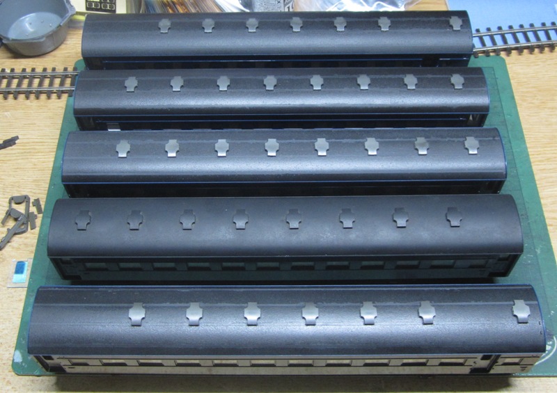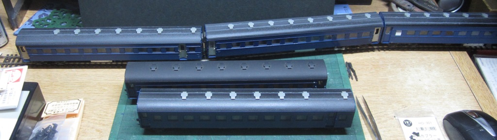 最新へジャンプ R7/12/29まで 令和7年もいよいよ押し迫ってきました。明日30日はブログで令和7年決算をアップして、ドキュメント72時間の特番を観ます。 大晦日は最後に買った電機の話をアップしたら、毎年のルーチンで年越しです。即ちお屠蘇とおせち料理で紅白歌合戦を観て、ゆく年くる年を観て年越しです。 スハ45とスハフ44はKATOのスハ43とスハフ42を使います。これは出来が良くて安いのでわざわざ自作する理由がない。 ただし車端に出るスハフ44については、KATOのスハフ42の妻面がイマイチなのでフジモデルのブラスモデルを使います。 件のスハ43だけど完璧なわけではなくて、コストに見合った出来になっているので、そこはディテールアップすればよい。 1.車体外装再塗装・・・編成で色味を合わせるためにエコーの青色(艶あり)で塗り直します。 2.屋根は煤けた感じのダークグレーで塗り直して、キャンパス重なり部分を塗り分けで表現します。 もちろんガラベンも塗り分けます。 3.台車は13mmに改軌します。 4.カプラーはIMONカプラーに換装します。 またはスハ、スハフの中間連結部分は製品のドローバーで車間が短くなるならそれを使おうと思います。 5.二重窓は内側も下ろした冬姿にします(つまり何もしない。) 文献を確認したら認識違いと追加工が必要と分かったので修正します。(12/30) 6.座席は灰色8号の塗りつぶし、モケットは青色で塗り分けます。床は灰色2号とのことなので製品ママでよいかも。 7.窓は原形、デッキドアはHゴムタイプ、便所窓は上部が折れて内側に倒れるタイプで、車番は2番にします。 つまりはKATOの改装型がドンピシャ、今から買うのも癪なので改造します。 6番はドア原形のようなので、スハ45の2両目は6番にします。 8.蓄電池箱は12個入りに交換します。 最近のモデルは普通にインテリアが入り、室内灯まで付いているものが多くなりました。窓越しに車内が見えるとやはり凝りたくなります。 このスハ45、スハフ44出来た暁にはさぞ『栄える』と思いますが、マスキングして何度も塗装することになる、つまり地道な作業になります。 R7/12/30まで ドキュメント72時間のランキング1位は病院内のケーキ屋でした。ケーキ屋の回は私の中ではランク外、奥能登でしょと思っていたのでガッカリ。 ランキング外でガッカリは二年連続、どうもあたしの嗜好は世間とはズレがあるらしい・・・。 KATO製スハ43のドアを撤去しました。 ドキュメント72特番を観ながら4枚をくり抜きましたが、かなり時間がかかりました。これを何両も工作するのは大変です。 R8/01/03まで 箱根駅伝は青学が総合優勝でした、優秀な人材が集まっているんですね。 毎年の年始挨拶で実家を回って、16時頃帰着しました。上野は相変わらずの人混みで、年始も普段もあまり変わらない、外国人多めで歩きにくい。日本は狭いですからね、端に寄ってもらわんと。 買い物ばかりしていないで作らないと、と思っている矢先から約1万円ほど使ってきました。新年早々に。イモン池袋店は相変わらず盛況で、井門社長もますますお金持ちになる訳ですな・・・って、あたし如きのカネの遣い方じゃ屁のツッパリにもならない?そうですね。 工房ひろのデッキドアNを買ってきました。 これを使って改装します。 ところがパーツは幅9.8mmなので戸当りも含んでいるサイズです。製品のドアは戸当りを残してドア部分を撤去したから、このパーツを使うには製品の戸当りを削るか、パーツの両側を削るかのどちらかになる。いや~ん、 どっちも面倒だからやりたくない。・・・やるけど。 さすがに二両目はやりたくないので、改装型を1両買いました。 だって改造は大変なだけで、がんばっても製品を超えられないならテンション下がるでしょ。原形タイプのスハ43はぶどう色1号になってもらって、別の編成で活躍してもらうことにします。 R8/01/04まで 楽しかった年末年始休暇も今日でオシマイ、あっという間でした。明日からのハードワークを考えるとゲンナリの、重度のサザエさん症候群です。 それにしても2026年の世界情勢は波乱のスタートです。独裁者トランプがベネズエラを軍事攻撃、独立国の大統領を捕えて自国施設に収容するとは何たる暴挙。米国の議会ってどうなっているの、承認は要らないのかしら。しかし、米国の軍事力がいかに世界一とは言え、マドウロ大統領もよくあっさり拉致されたものですな。 ベネズエラ軍は察知も抵抗も出来なかったのでしょうか。中東がヤバいからベネズエラで原油を確保する?ここからベネズエラの反撃が始まって戦争になれば、中国はすかさず台湾に侵攻するかもしれません。揚陸作戦も訓練ではなく本気とは考えられないでしょうか。 米国はイスラエルとウクライナ対応も抱え、中国の台湾進攻にまでは手が回らないと思います。習近平国家主席を米国は国賓として迎えるそうですが、そこで密約が成され習近平帰国後の台湾進攻を黙認するのではないか。 そうすると高市首相は